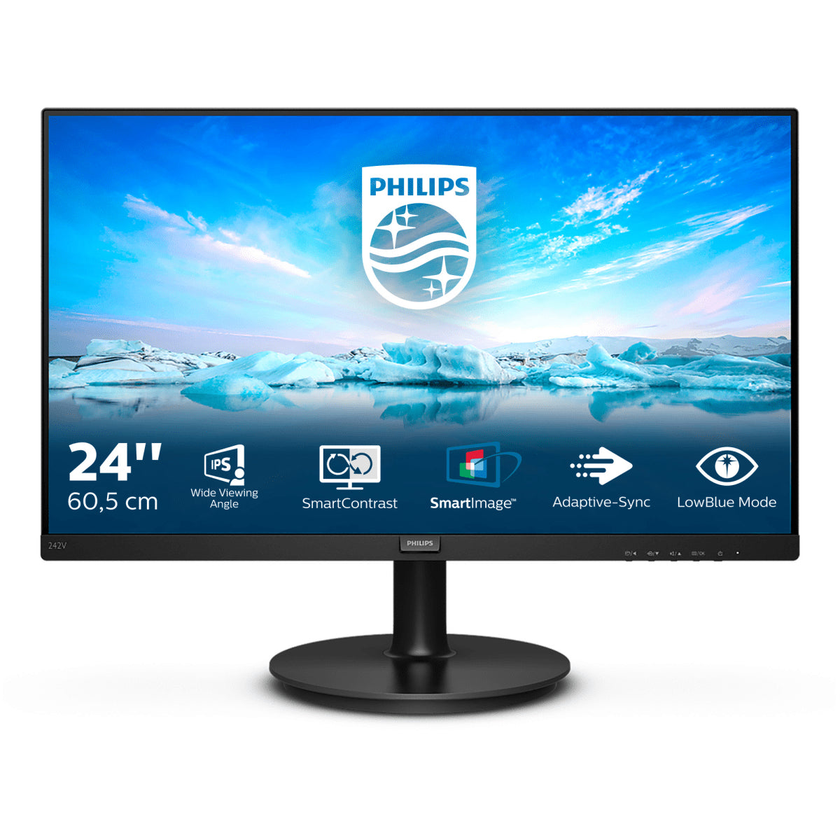 Philips Línea V 242V8A/00. Diagonal del tamaño de la pantalla: 60,5 cm (23,8), Resolución: 1920 x 1080 Pixeles, Tipo HD: Full HD, Tecnología de visualización: LCD, Superficie de la pantalla: Mate, Tiempo de respuesta: 4ms, Relación de aspecto nativa: 16:9, ángulo de visión (horizontal ): 178°, ángulo de visión (vertical): 178°. Altavoces incorporados. Soporte VESA. Certificado Energy Star, color del producto: negro.
