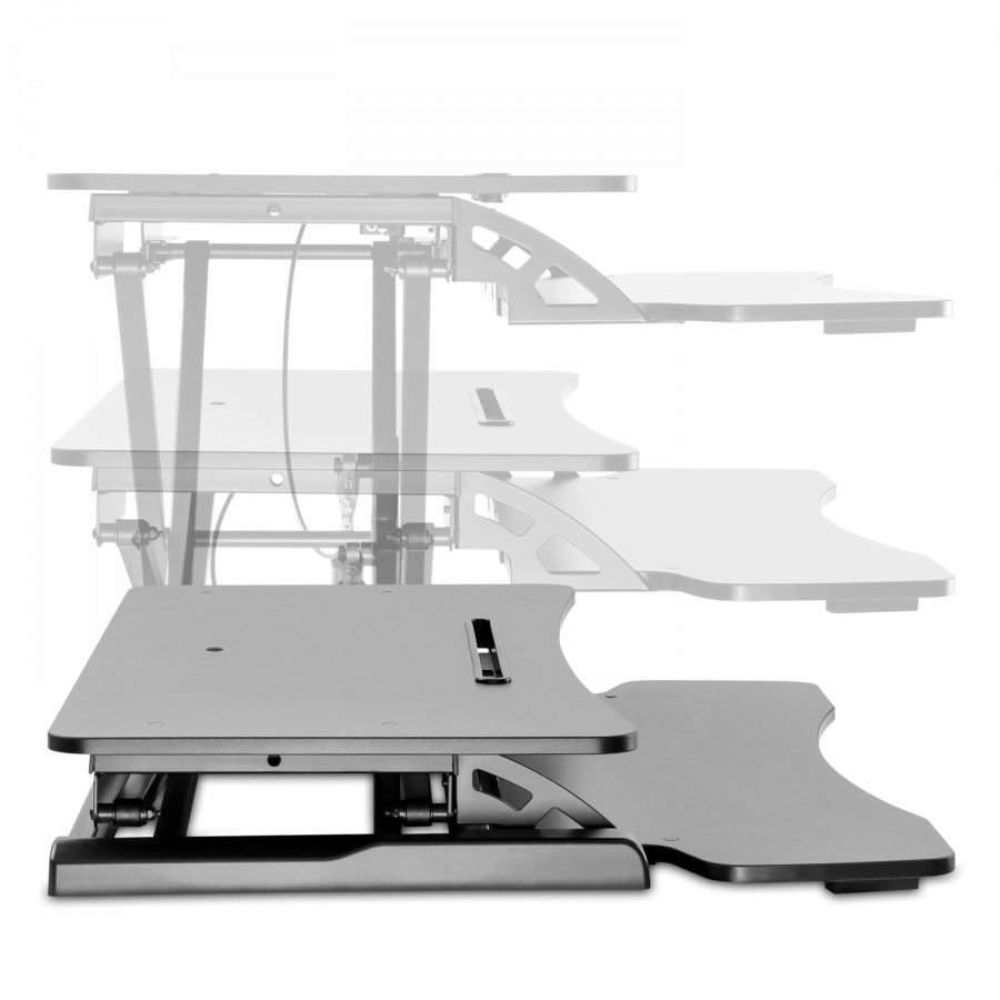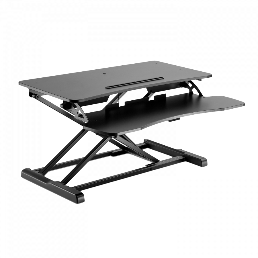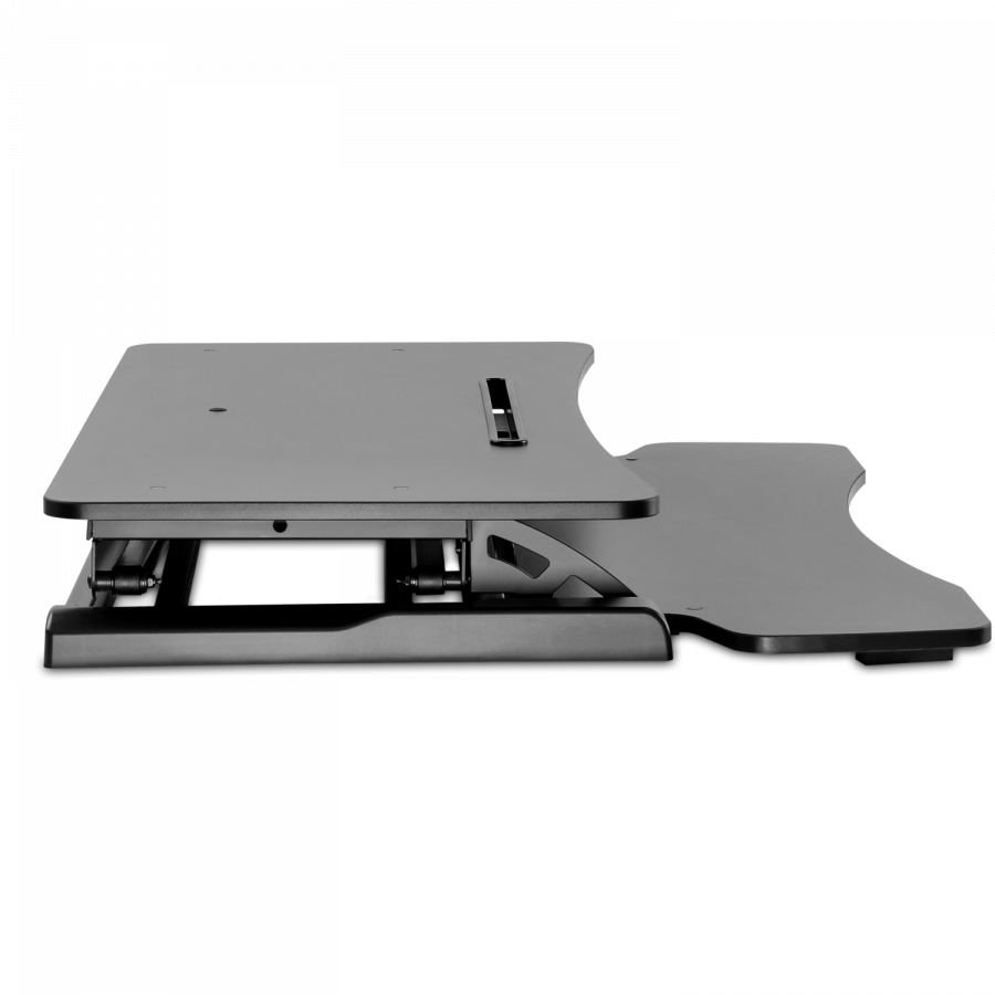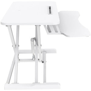 V7 DT2SSW. Color del producto: Blanco, País de origen: China. Ancho: 800 mm, Fondo: 615 mm, Alto: 500 mm. Longitud del embalaje: 880 mm, Profundidad del embalaje: 520 mm, Altura del embalaje: 170 mm. Certificados de sostenibilidad: RoHS. La estación de trabajo de escritorio Essential Sit-Stand de V7 proporciona una manera fácil de cambiar entre estar sentado y de pie en su escritorio. Cuenta con una superficie de visualización superior y un escritorio inferior para teclado y mouse. Se envía completamente ensamblado, además no se requiere montaje para la instalación, lo que hace que la implementación sea rápida y fácil. Cuenta con un mecanismo de elevación asistido por resorte que le permite cambiar fácilmente entre sentarse y pararse en solo unos segundos. Con la estación de trabajo de escritorio para trabajar de pie o sentado de V7, es fácil comenzar a disfrutar de los beneficios para la salud de estar de pie mientras trabaja.