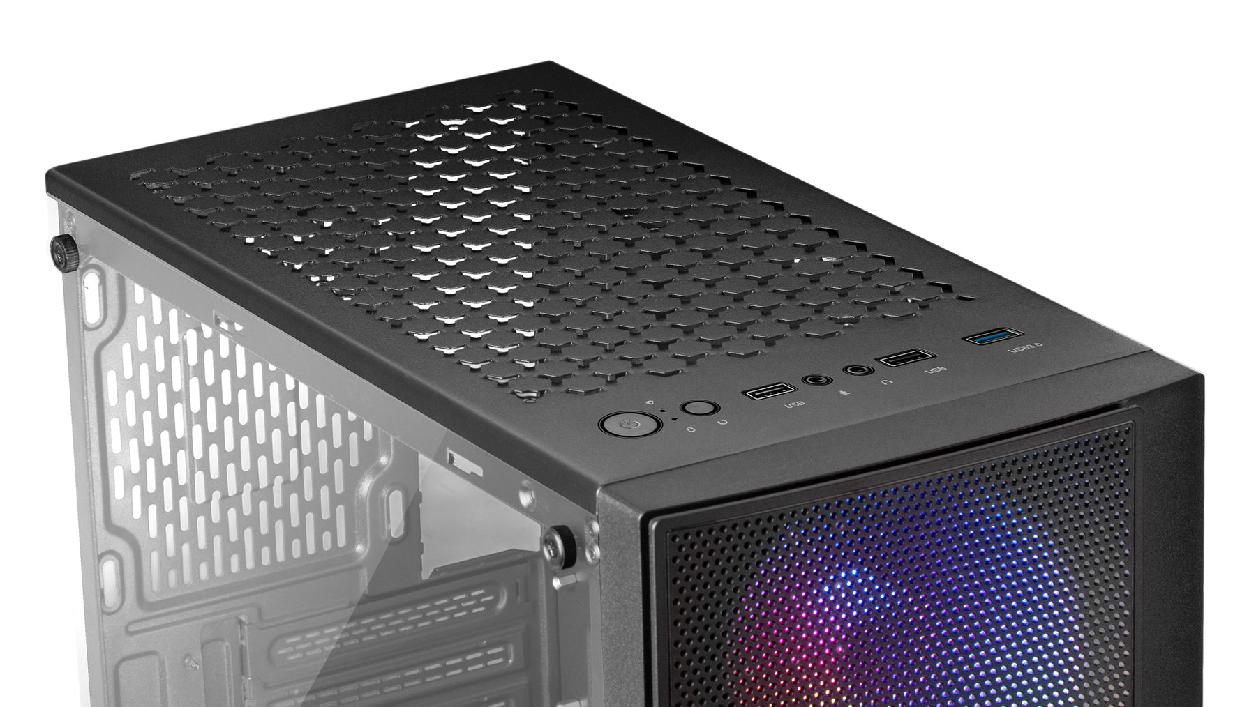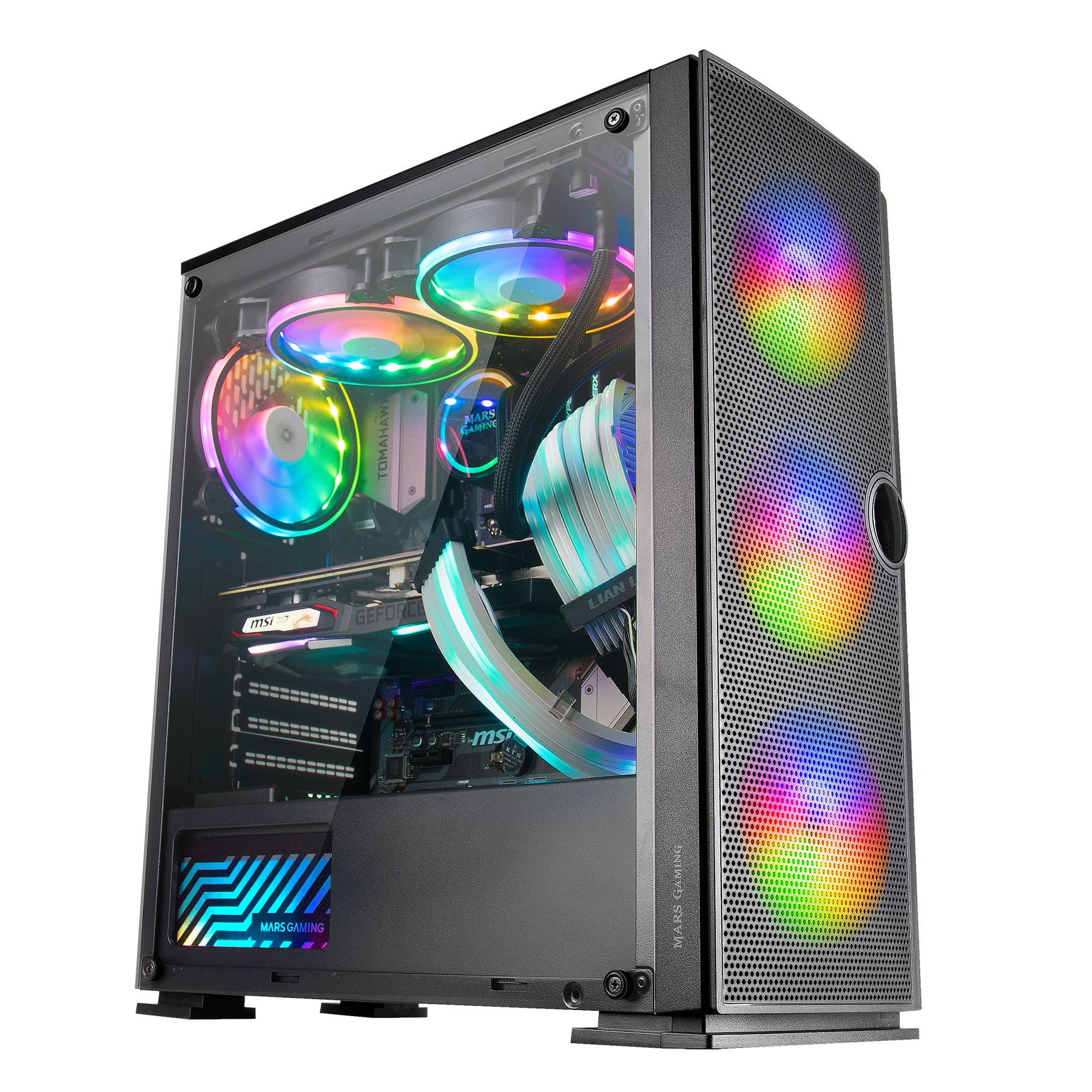 CAJA MARS GAMING MC320 ATX, 3 VENTILADORES FRGB DE 120 MM, VENTANA, MALLA FRONTAL, NEGRO