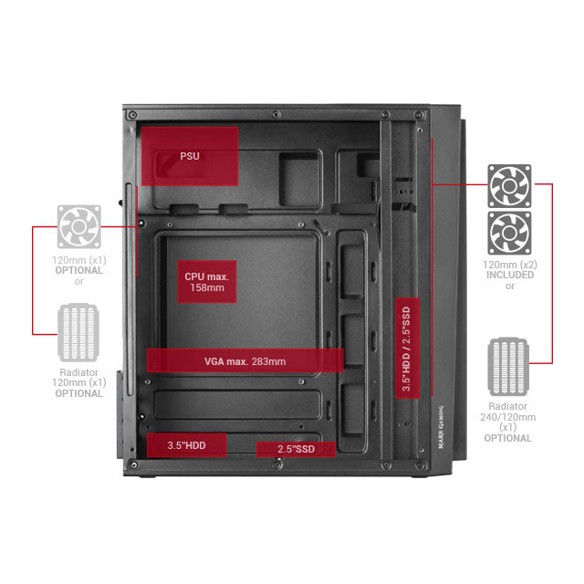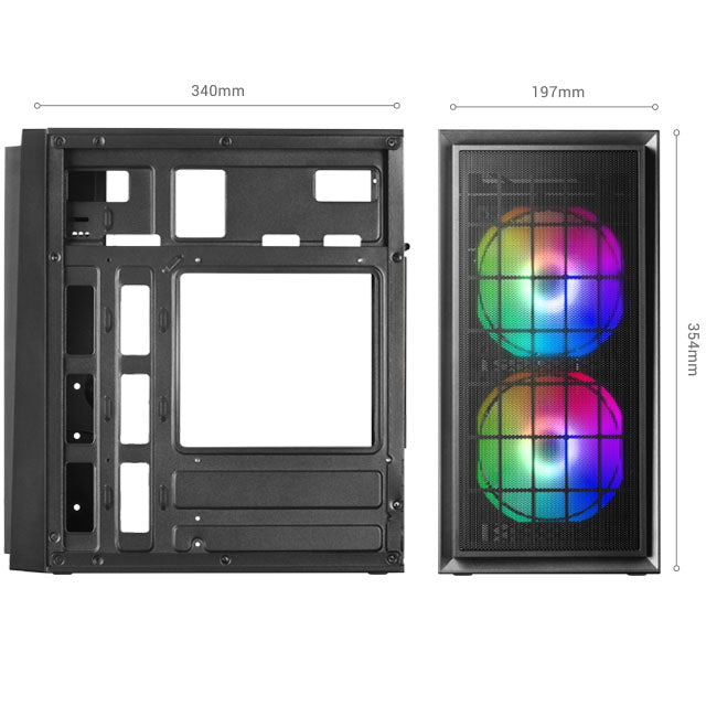 BOX MARS GAMING MCDUO MICRO-ATX CASE, 2X FRGB FAN, VENTANA, MALLA, REFRIGERACIÓN POR AGUA, NEGRO (MCDUO)