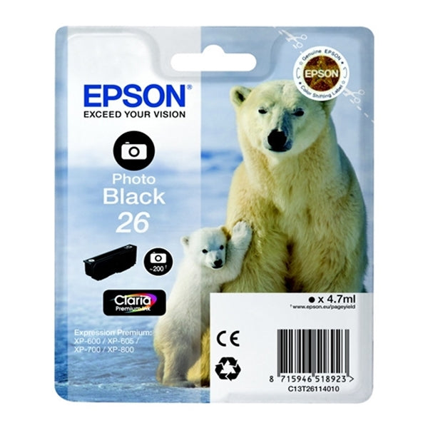 EPSON TINTEIRO PRETO PHOTO 26XL ALTA CAP C/ALARME XP-800/700/600/605/820/720/620