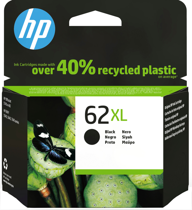 HP 62XL - Alto Rendimento - preto - original - tinteiro - para ENVY 55XX, 56XX, 76XX, Officejet 200, 250, 252, 57XX, 8040