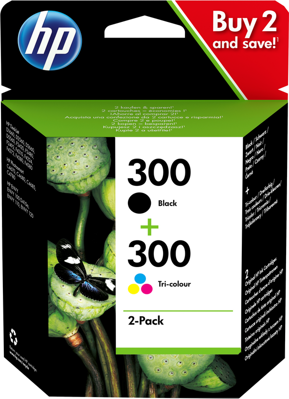 HP 300 - Pack de 2 - preto, cor (ciano, magenta, amarelo) - original - tinteiro - para Deskjet D2680, F2420, F2430, F4213, F4580, ENVY 100 D410, 11X D411, Photosmart C4670