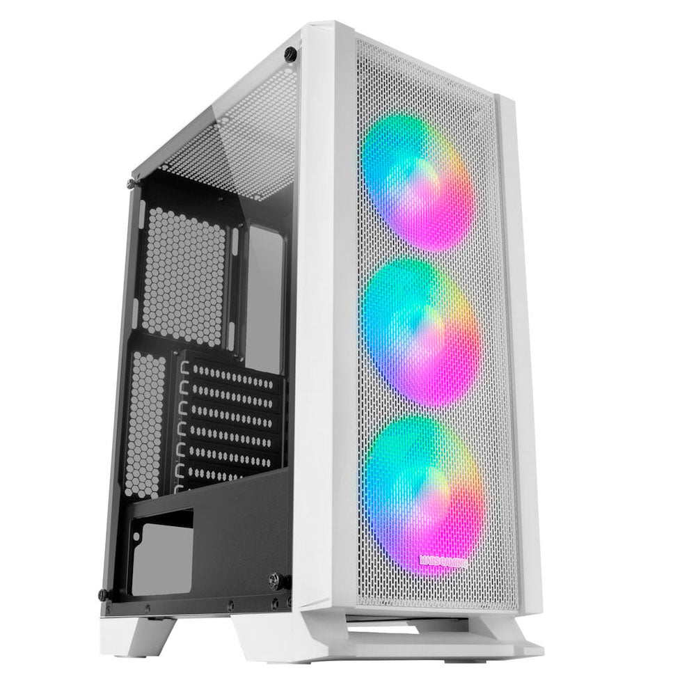 Caixa MARS GAMING MCC ATX CASE, 3X 12CM FRGB FAN, GLASS, FRONT MESH, WHITE (MCCW)