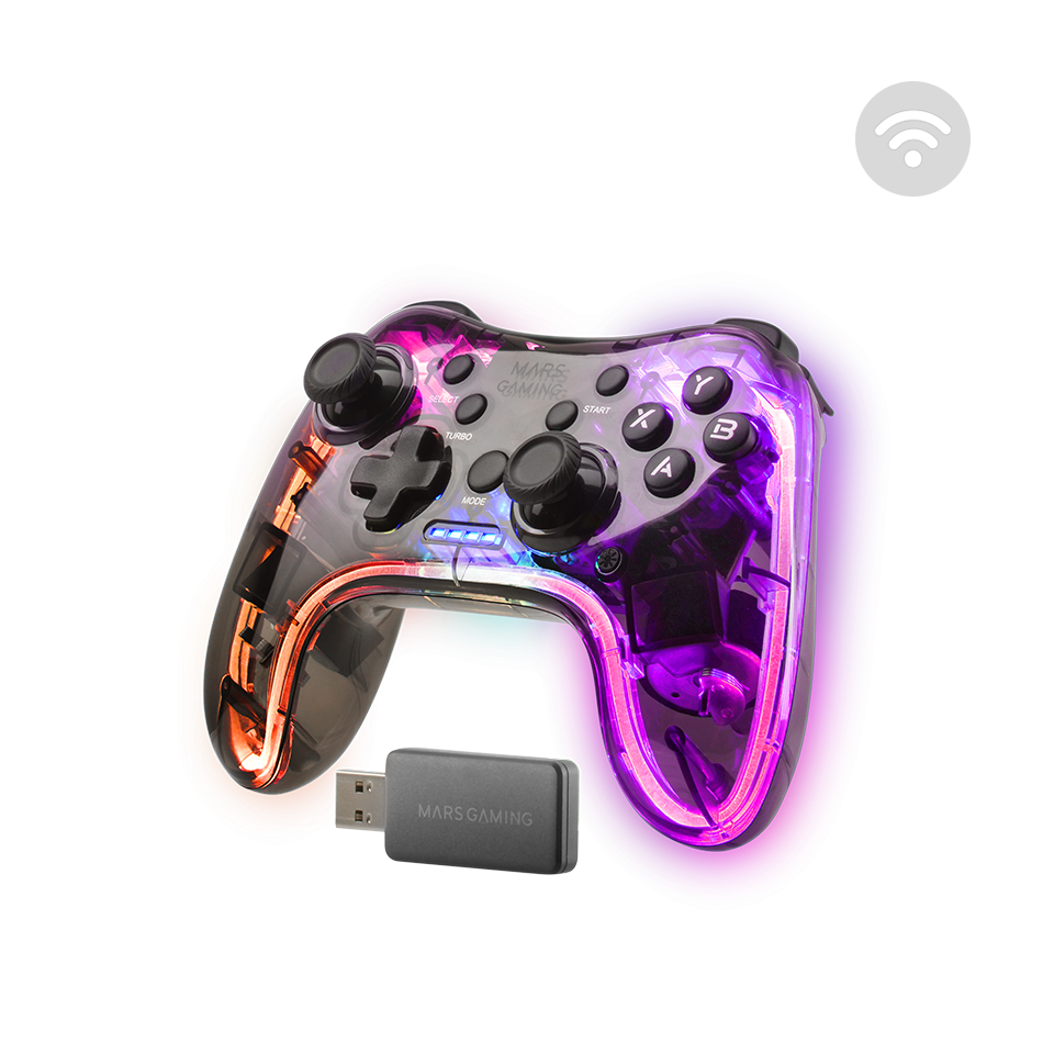 Comando MARS GAMING MGP-24 WIRELESS, 2.4G PRO NO-LAG, NEON RGB, PC, MAC, PS3, PS4, PS5, ANDROID, RPI