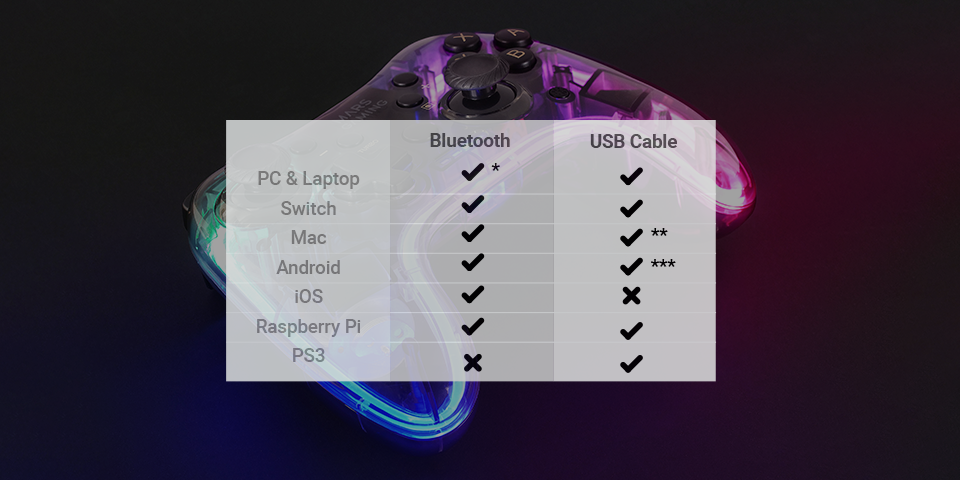 Comando MARS GAMING MGP-BT WIRELESS, BT 5.0 + EDR, NEON RGB, SWITCH, PC, MAC, ANDROID, IOS, PS3