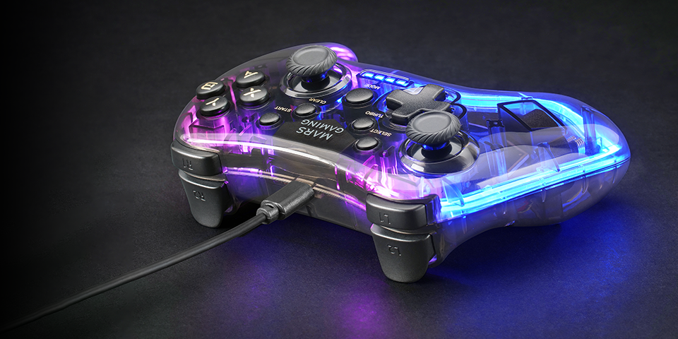 Comando MARS GAMING MGP-C GAMEPAD, NEON RGB, DUAL HAPTIC, SWITCH, PC, MAC, PS3, ANDROID, RP PI