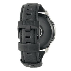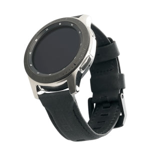 UAG SAMSUNG GALAXY WATCH 46MM LEATHER STRAP BLACK. Built for the modern adventurer, our leather band for Galaxy Watch is a perfect pair for those looking for a stylish aesthetic. Made with Italian Leather, custom stainless steel hardware, and a collar locking snap for maximum security, the UAG leather watchband is built to handle the daily grind without compromising your style. - Supple Italian Leather, - Stainless Steel Custom Hardware, - Collar Locking Snap Security, - Designed for Galaxy Watch Series, - Watch band is one size fits most