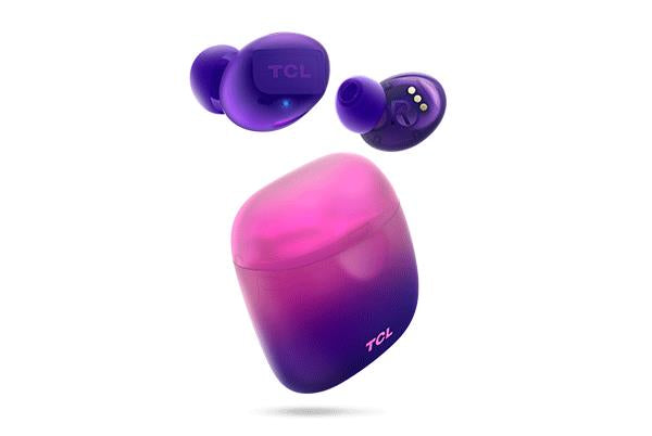 TCL SOCL500TWS Auscultadores Estéreo Auscultadores - Lilás - Binaural - No ouvido - 1000 cm - Bluetooth - 9 Hz para 22 kHz. Effortless comfort for every ear shape. Listen to your favorite music and entertainment in total comfort, with ergonomically sculpted ear-pieces. Extended play time of up to 26 hours with 6.5 hours per charge: Keep the music going all day with a long play-time of up to 26 hours, with 6.5 hours per charge for each ear-piece. IPX4 sweat and splash proof: Feel free to make a splash, these headphones can handle it, with IPX4 protection from sweat and splashes. 5.8mm speaker drivers for rich bass and clear sound: Enjoy rich, powerful bass and clear, detailed sound, with tiny but mighty 5.8mm speakers. Unique translucent with carefully crafted colour gradients: Find the perfect style for you. The striking translucent exterior and sleek color fades give these headphones a stylish edge. Slimline and fast recharging case with USB-C. Get a quick charge when you need it with the streamlined fast-charging case with USB-C connection. Features: Unique translucent finish and color gradient, 5.8mm speaker drivers, Ear-centric design, Bluetooth 5.0, IPX4 sweat and splash proof, Up to 26 hours play time, Slimline charging case, 15 mins fast charging for 1 hour play