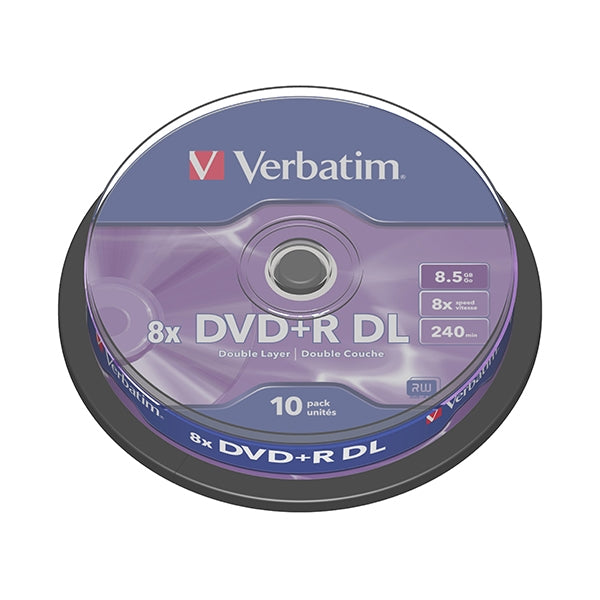 VERBATIM DVD+R 8X 8.5GB 240MIN DOUBLE LAYER BOBINE (CAKE) PACK 10