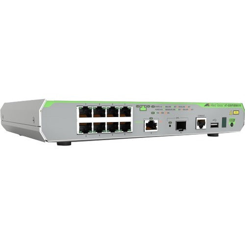 L3 GIGABIT SWITCH 8X 10/100/ 1000-T 1X 1/2.5/5/10G-T 1X SFP+. Gigabit Layer3 Lite Access Switches with 10 Gigabit Uplinks. The Allied Telesis CentreCOM GS970EMX series Layer 3 Lite switches provide Gigabit connectivity with 10 Gigabit copper and fiber uplinks. They feature a comprehensive feature-set making them ideal for secure and cost-effective access in small to medium business networks. Overview: The Allied Telesis GS970EMX series provide high availability, security, and a basic L3 feature set. The GS970EMX/10 features 8x 10M/100M/1 Gigabit ports with 1x 100M/1/2.5/5/10 Multi-Gigabit copper uplink and 1x 1/10G SFP+ uplink. The GS970EMX/28 features 24x 10M/100M/1 Gigabit ports with 2x 100M/1/2.5/5/10 Multi-Gigabit copper uplinks and 2x 1/10G SFP+ uplinks. The compact and fan-less design provides silent operation and flexible deployment, making it ideal for the edge of modern business networks. Network Management: The GS970EMX Series support the AlliedWare Plus™ advanced operating system for consistent management across all devices. The industrystandard Command Line Interface (CLI) reduces time and cost, while the web-based Graphical User Interface (GUI) is built in for easy-to-use visual management. Network Security: Network security is guaranteed, with powerful control over network traffic types, secure management options, and other multi-layered security features built right in. Network Access Control (NAC) gives unprecedented control over user access to the network, in order to mitigate threats to network infrastructure. 802.1x port-based authentication, in partnership with standards-compliant dynamic VLAN assignment, checks a user's adherence to network security policies and either grants access or offers remediation. Tri-authentication ensures the network is only accessed by known users and devices, and secure access is available for guests. Protection from malicious network attacks is provided by security features such as DHCP snooping, STP root guard, BPDU protection, and access control lists. Each of these can be configured to perform a variety of actions upon detection of a suspected attack. Stackable: Create a VCStack™ of up to four GS970EMX/28 switches with 40 Gbps of stacking bandwidth. VCStack provides a highly-available system in which network resources are spread out across stacked units, minimizing the impact should any link or unit fail. Reliability: The GS970EMX Series support Ethernet Protection Switched Ring (EPSRing™), which prevents loops in ring-based networks. EPSR offers rapid detection and extremely fast failover in the event of a link or node failure, with recovery in as little as 50 milliseconds. The GS970EMX Series can act as the EPSR master with a premium license, ensuring resiliency in Ethernet ringbased networks.