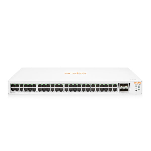 Hewlett Packard Enterprise Aruba Instant On 1830 48G 4SFP. Tipo de switch: Gerido, Camada de switches: L2. Tipos de portas ethernet Basic switching RJ-45: Gigabit Ethernet (10/100/1000), Número de portas ethernet Basic switching RJ-45: 48. Full duplex. Tabela de endereços MAC: 16000 entradas, Capacidade de routing/switching: 104 Gbit/s. Normas de Comunicações: IEEE 802.1D, IEEE 802.1Q, IEEE 802.1ab, IEEE 802.1p, IEEE 802.1w, IEEE 802.3, IEEE 802.3ab, IEEE.... Montagem em prateleira, Forma: 1U (H x W x D) 25.30 x 44.30 x 4.39 cm