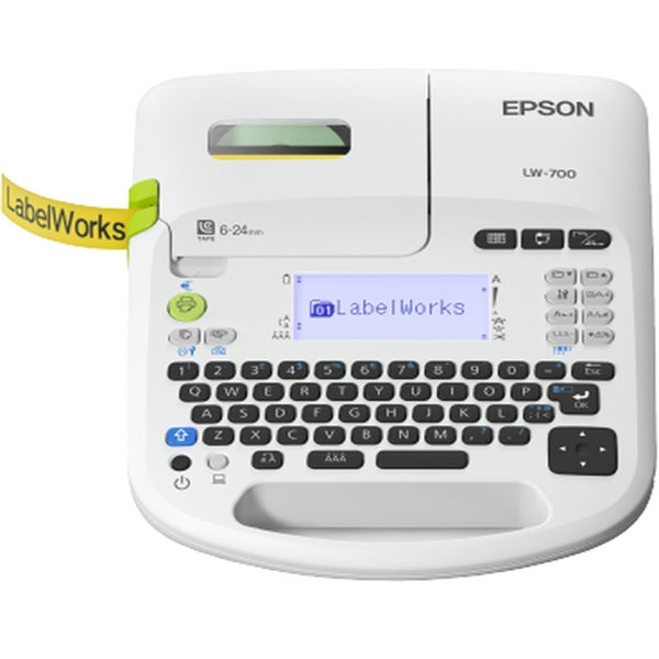 A LabelWorks LW-700 da Epson é a impressora de etiquetas ideal para vários sectores de manutenção que necessitam de criar etiquetas no escritório ou no exterior. Com funções fáceis de utilizar, um ecrã de pré-visualização e uma fita com 9 metros de comprimento, este dispositivo permite criar sem esforço etiquetas que podem ter até 24 mm de largura, para inúmeras tarefas internas ou externas. Epson LabelWorks LW-700. Layout do teclado: QWERTY. Tecnologia de impressão: Trasferência termal, Resolução Máxima: 180 x 180 DPI, Velocidade de impressão: 13 mm/seg. Cor do produto: Branco