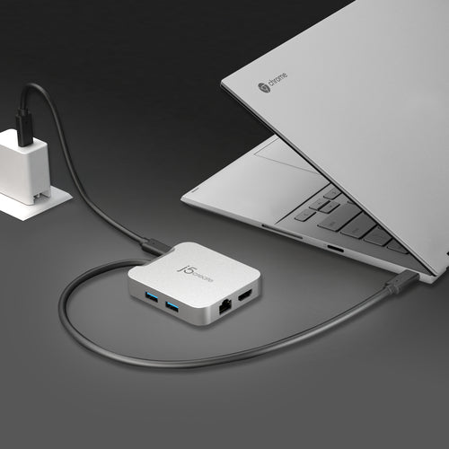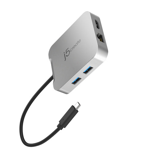 j5create JCD391. Tecnologia de conetividade: Com fios, Interface do host: USB 3.2 Gen 1 (3.1 Gen 1) Type-C, Fornecimento de energia USB até: 85 W. Taxa de transferência de dados Ethernet LAN: 10,100,1000 Mbit/s. Cor do produto: Prateado, Taxa de transferência de dados: 5 Gbit/s, Taxa máxima de actualização: 60 Hz. Tensão de saída: 20 V, Corrente de saída: 0,4 A, Consumo de energia (típico): 2 W. Outro sistema operativo compatível: ChromeOS. This compact multi-port adapter is ideal for travel, featuring everything from the essential HDMI™ output, USB™ ports to Gigabit Ethernet and 86W Power Delivery passthrough. It gives you the ability to connect your Chromebook™, MacBook®, or other USB-C® compatible laptops to a 4K monitor or TV with 60 Hz refresh rate and audio. With USB™ Power Delivery 3.0, you can charge your laptop and power your peripherals with a single USB-C® power adapter even if your laptop only has one USB-C® port. In addition, you can connect or charge your USB™ devices via the SuperSpeed USB™ 5Gbps ports and access a wired network through the Gigabit Ethernet port. Through a single USB-C® (Thunderbolt™ 3 compatible) host cable, this compact adapter provides all the essential connectivity you need to create a workstation virtually anywhere!