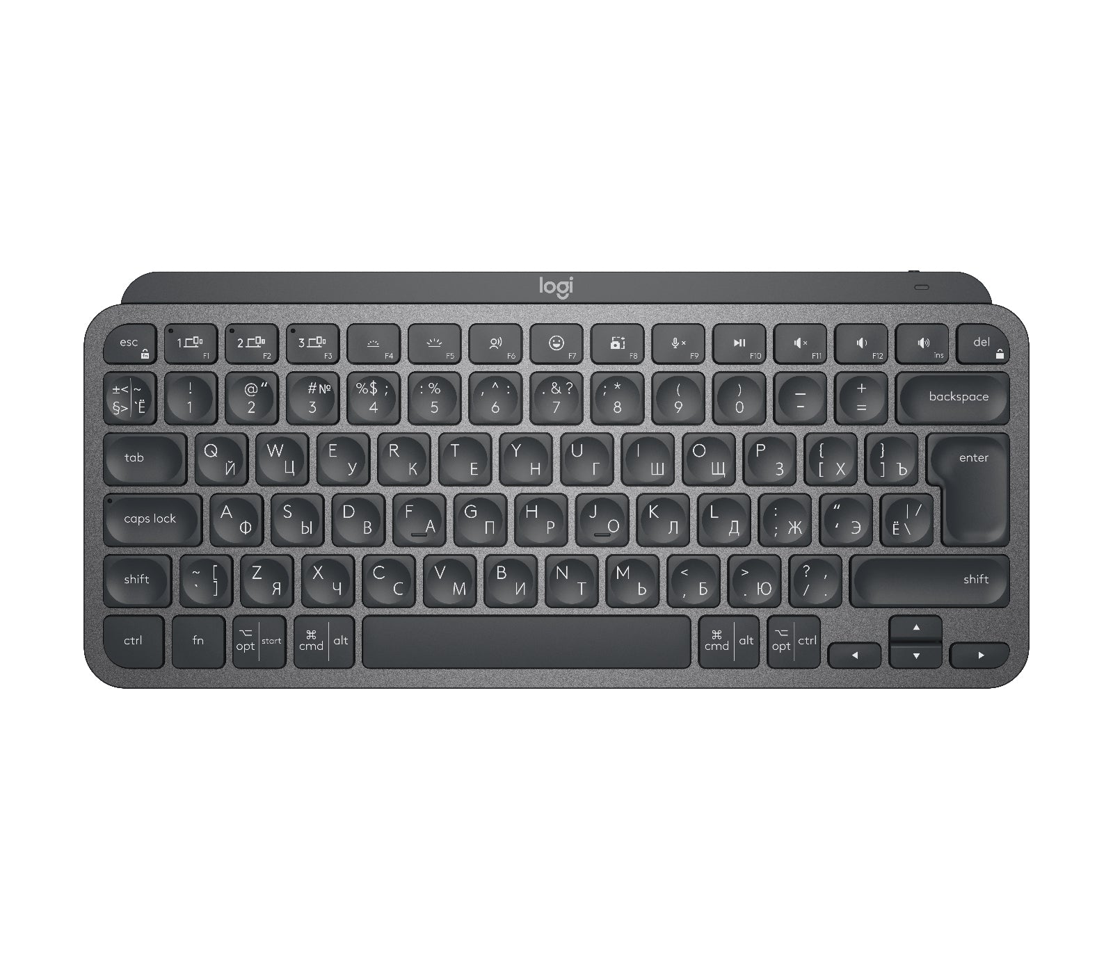 Logitech MX Keys Mini - Teclado - retroiluminação - Bluetooth - QWERTY - Russo - grafite