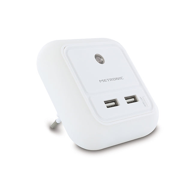 METRONIC CARREGADOR 2xUSB + SENSOR DE LUZ