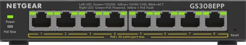 NETGEAR Plus GS308EPP - Interruptor - inteligente - 8 x 10/100/1000 (PoE+) - desktop, montável na parede - PoE+ (123 W)
