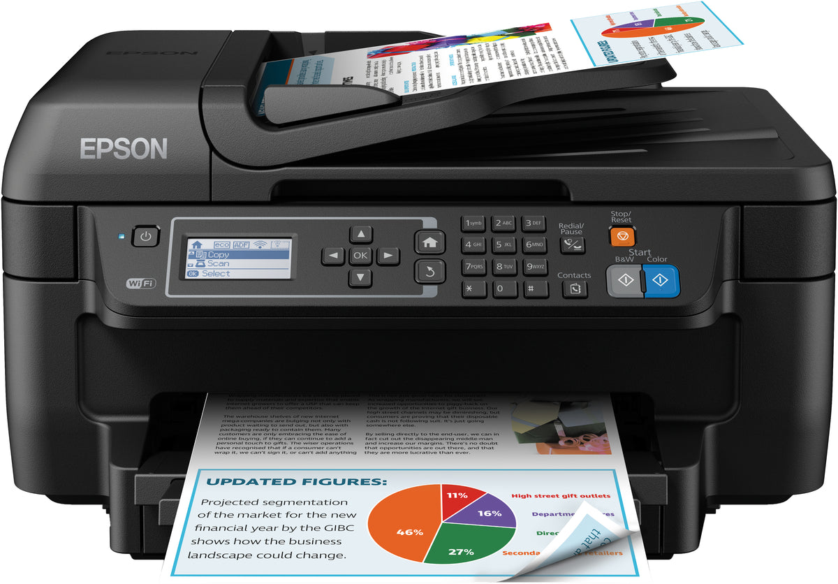 EPSONEpson WorkForce WF-2750DWF - Impressora multi-funções - a cores - jacto de tinta - A4/Legal (media) - até 13 ppm (impressão) - 150 folhas - 33.6 Kbps - USB 2.0, Wi-Fi(n)